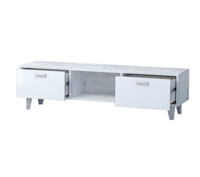 Гостиная Эго, модульная (на ножках) Бетон светлый/Белый глянец